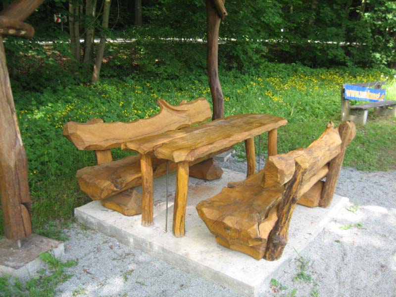 - die Bearbeitung erfolgte mit der Kettensäge, Beitel und anschließendem Glattschliff