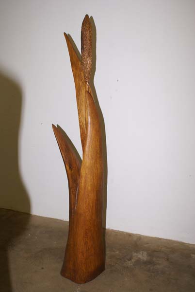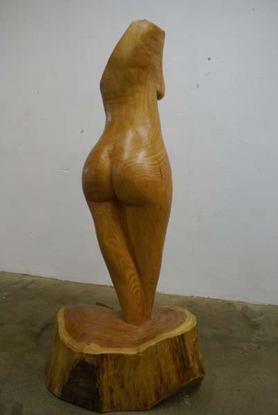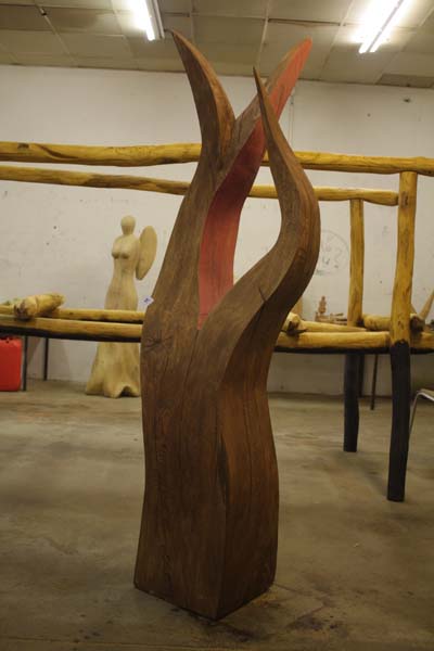 - die Holzskulptur wurde mit der Kettensäge bearbeitet und anschließend geschliffen